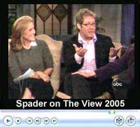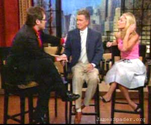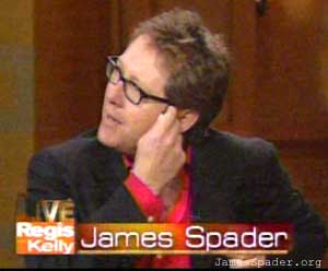 Spader James Spader visits The Tonight Show with Jay Leno Spader talks about Boston Legal, the Emmys, computers, his acting anti-work ethic, his eyesight and chemistry with William Shatner. (10:48) >> images from the interview ![]() ![]() ![]() ![]() See images >> 1 2 3 4 ![]() ![]() ![]() ![]() ![]() Vintage Spader. Airdate: September 17, 1996; [8:46 min.] Thank you to Susan aka Nigelsmum who generously provided this video for all to enjoy. She has posted screen captures and a full transcript of this interview as well. According to her transcript we know "Number of times Spader switched gears before finishing his sentence: Four - Boy, he did good." ![]() Airdate: November 3, 2005 [7:19] images 1 2 wm stream; 340 bitrate / no downloads Spader: Friends of mine are comedians and they all - that's all they do is explore the dark side of life. *laughs* Like, for instance, we've got some very, very funny writers on the show who are very comedic. Well, in person and in the course of every day, it's always sort of dark and gloomy. *laughs* Spader: Bill and I have a couple of love scenes coming up. Very loving scenes. They're not really love scenes. They're just - it's, it's more... they're not really love scenes. They're bed scenes. Regis: BED SCENES! Spader: A couple of them coming up this season. It's a very exciting season. We're trying all sorts of new things. Faking it; or 'The Sound bites alone... ' ![]() Spader on Good Morning, America ![]() ![]() James talked wth Charles Gibson of "Good Morning, America" on Sept. 26, 2005. [Plea: I only captured the final minute. If you have a digital version you're willing to share with the site, please contact me. I'll credit you, of course.] Same Time, Last Year ![]() Watch James talk to the girls about his surprise Emmy win last year. Spader will pay a return visit to The View on Boston Legal premiere day, Sept. 27. About the 2004 Emmy win: "I was a long shot. I told people I was very surprised. I realized I really wasn't surprised so much as I just had to refused to believe that the contest really even existed." Confessing an endearment: "My mother used to call me 'butterscotch poodle'." ![]() (8:53) wm stream; 340 bitrate / no downloads Images: 1 2 3 4 5 6 Spader on The Cat in the Hat Spader:*about David Kelley* "There's a burden he has in this past year and will have again next year that he didn't have in The Practice. David Kelley - who is the writer and creator of both The Practice and then this show, Boston Legal - he said to me that he conceived of this character of Alan Shore like the Cat in the Hat. Come in, make a mess. Get out before he gets in too much trouble. And now there's a show that he's in the center - and so he has the burden now to sort of carry a dramatic responsibility as well. He has to - he can't just wreck the place and then run away as quickly as his - you know." ![]() (11:11) wm stream; 340 bitrate / no downloads Boston Legal's James Spader on "Late Night with Conan O'Brien" Spader: "Bill and I spooning, wrapped around each other in bed, where you smell their smells. Pillow talk." ![]() Boston Legal's James Spader on "Late Night with Conan O'Brien" (10:39) wm stream; 340 bitrate / no downloads [excerpt: Spader: "They always say oysters are aphrodisiac. They're a great, sexy food. You start the night with oysters, move on to truffles with eggs and end up with chocolate - and drink champagne throughout - you're getting laid that night."] ![]() Vintage Spader Interview from 2003 Watch James Spader on The Daily Show with Jon Stewart from November 19, 2003. (6 min) Clip is on the JamesSpader.org site.